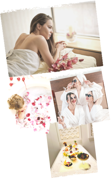 夜⾵に吹かれながら、友達と天然鉱⽯のベットで温まって
